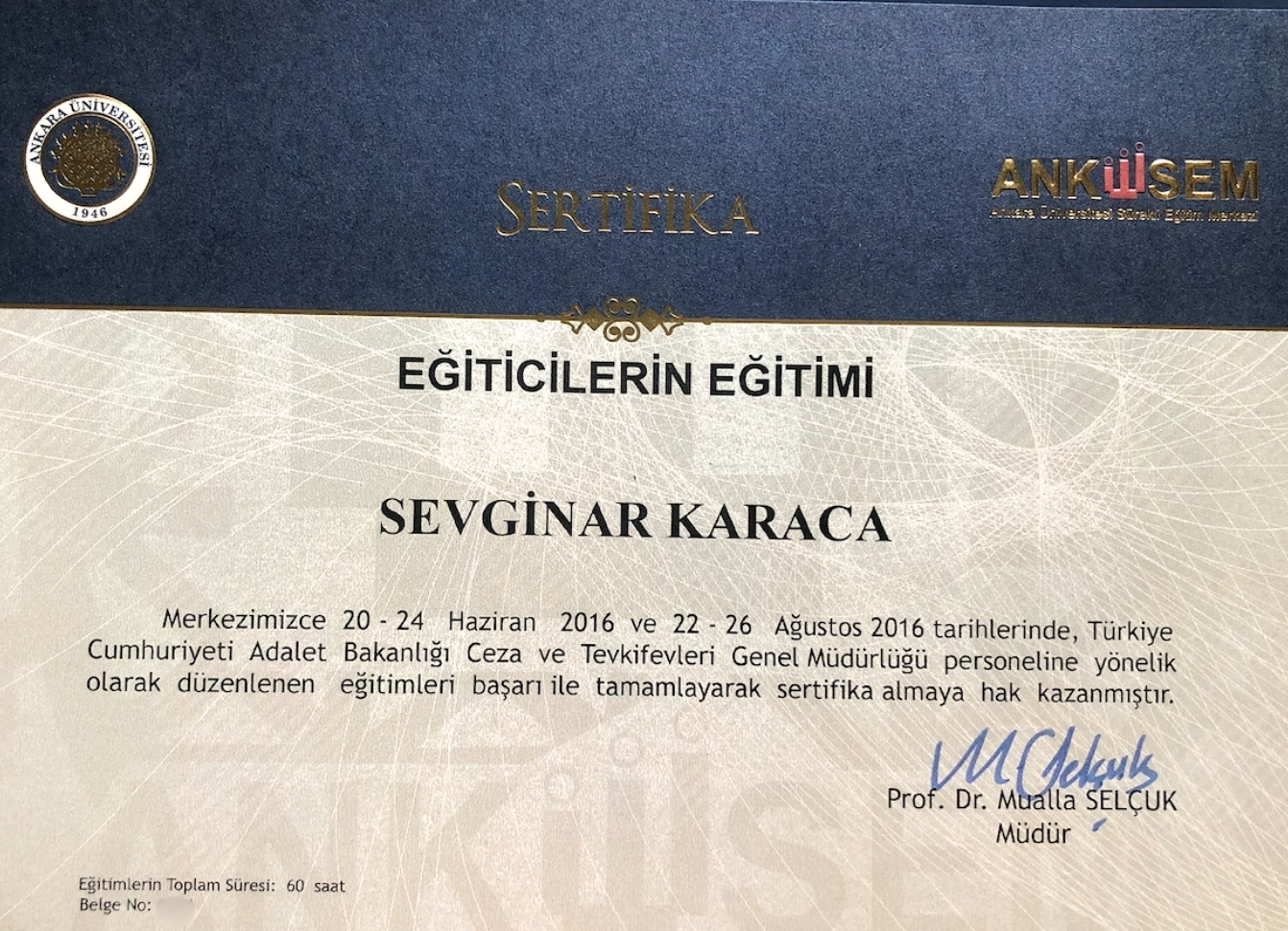 ve Şefkat Eğitmenliğini tamamladım.